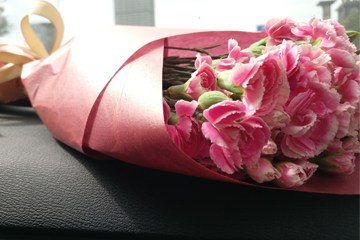 康乃馨,原名:香石竹,拉丁文名:Dianthus caryophyllus.又名:狮 头石竹、麝香石竹、大花石竹,拉丁文名:Dianthus caryophyllus L. 石竹科、石竹属多年生草本,高40-70厘米,全株无毛,粉绿色。茎丛生, 直立,基部木质化,上部稀疏分枝。叶片线状披针形,顶端长渐尖,基部稍 成短鞘,中脉明显,上面下凹,下面稍凸起。花常单生枝端有香气,粉红、 紫红或白色;花梗短于花萼;宽卵形,顶端短凸尖,花萼圆筒形,萼齿披针 形,边缘膜质;瓣片倒卵形,顶缘具不整齐齿;雄蕊长达喉部;花柱伸出花 外。蒴果卵球形,稍短于宿存萼。花期5-8月,果期8-9月。